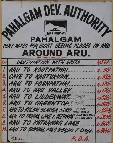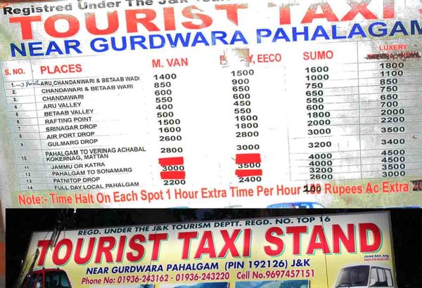 Maruti van for aru Valley & betab valley : 550 & 450 respectively And 25 per head extra at aru valley entry