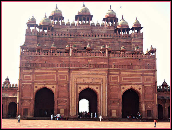 The next day we left Bharatpur towards Agra. The first stop was Fatehpur Sikri. Our driver informed us that tourist cars are not allowed to go up to the fort. So he stopped near the parking which also has different stalls where the guides and autos are arranged for the visit to the fort. The first one who approached us quoted Rs 375/- for to and fro auto and guide. We negotiated for Rs 300/- which was agreed upon (I should have negotiated for lesser than that since it was quite early in the morning). We entered through the Shahi Darwaza from where you can see the Jama Masjid in front of you, the Buland Darwaza towards your left and the Dargah of Salim Chishti on your right. Then we went to the Buland Darwaza, Jama Masjid, to the boundary from where one could see Hiran Minar, the the Dargah of Salim Chishti. We missed seeing the Diwan-e-aam, Diwan-e-khaas and the palaces. To go to the palaces you need to come out from the Shahi Darwaza and you will see the board which shows the direction to the above places. Fatehpur Sikri was supposed to be the capital of the Mughals. Due to water shortage the capital was shifted to Agra. In the Jama masjid there is a madrasa which is still active. The entire complex is made of red sand stone except for the dargah which is made in marble.
